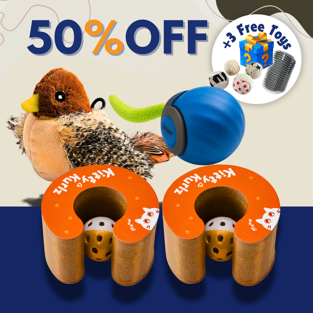 Most boxes contain 5+ items, and many toys (like the Kitty Kurlz) are designed for multiple cats to enjoy together. Plus, with magnetic connectors on some toys, you can create an even bigger play experience for multi-cat households.