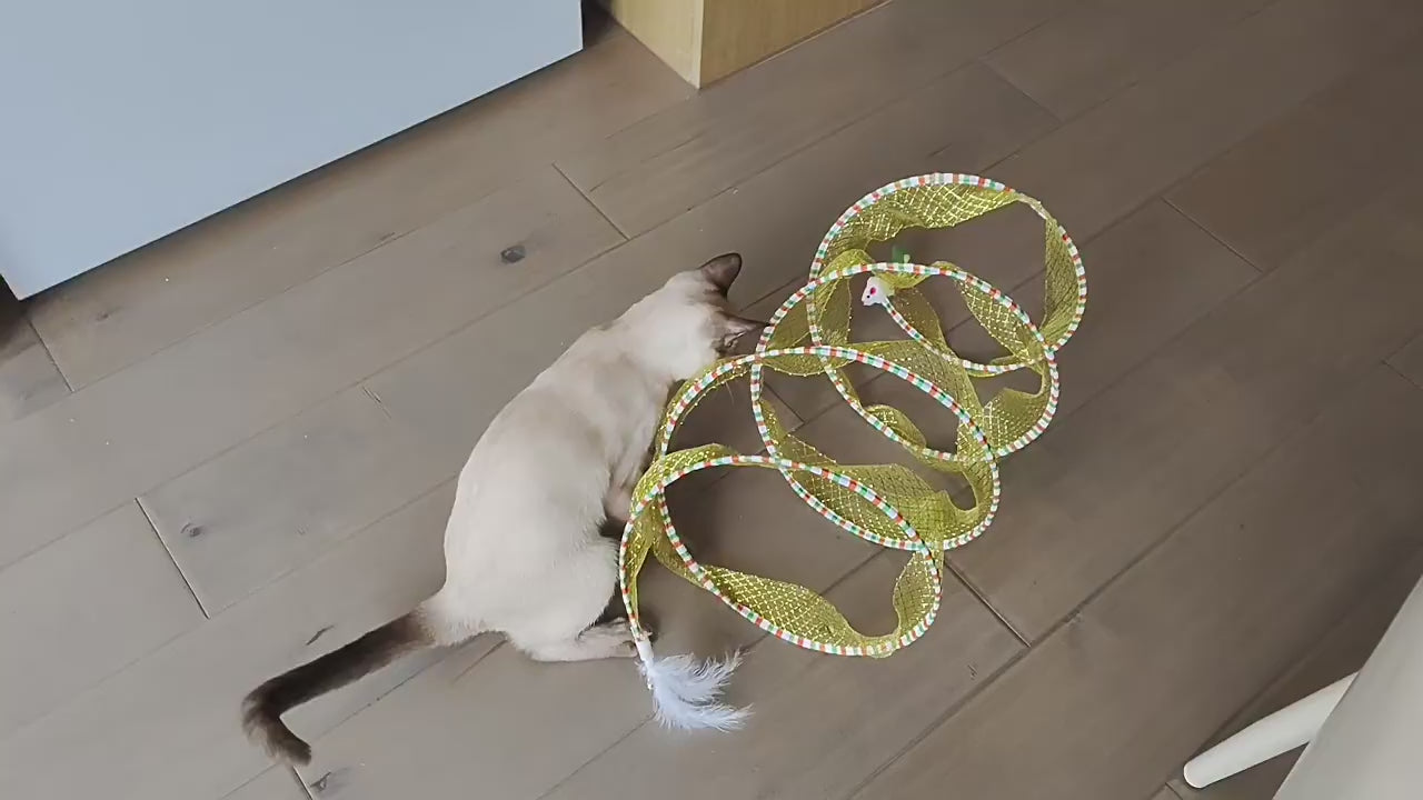 - Stimulating Play: The tunnel features enticing feather toys and sisal balls peeking out from both sides, encouraging batting, chasing, and exploration.