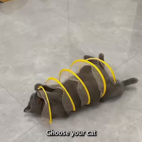 This fun cat tunnel is like a kitty arcade! It folds up for easy storage & has feathery surprises to keep your cat entertained for hours.