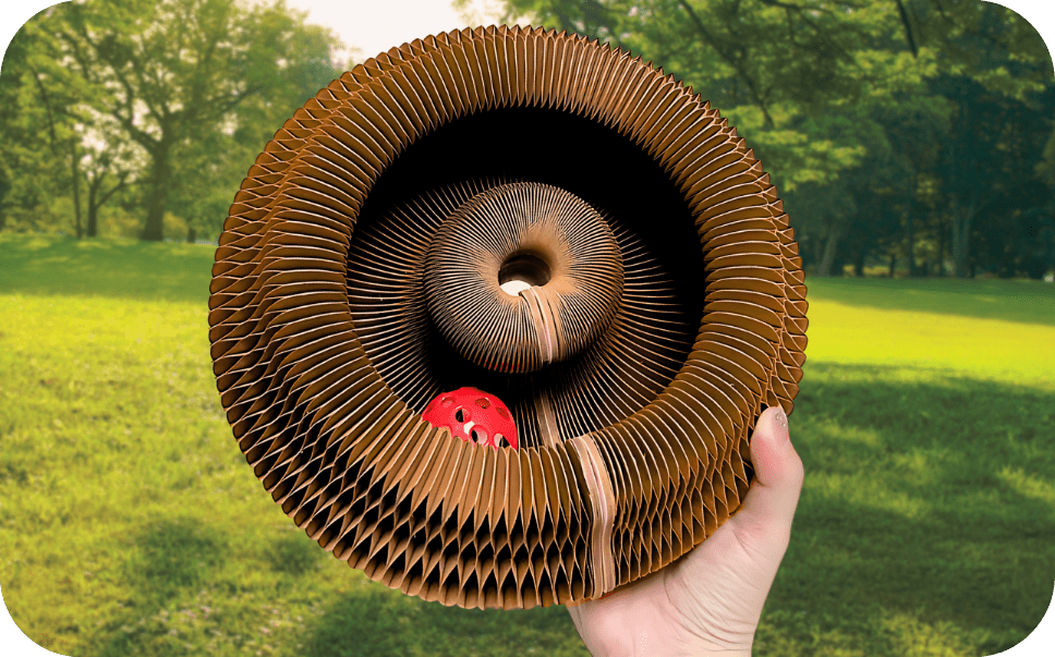 Pet-Parents love the all-in-one design. A scratcher, ball track, shape-shifter and even a cozy bed.